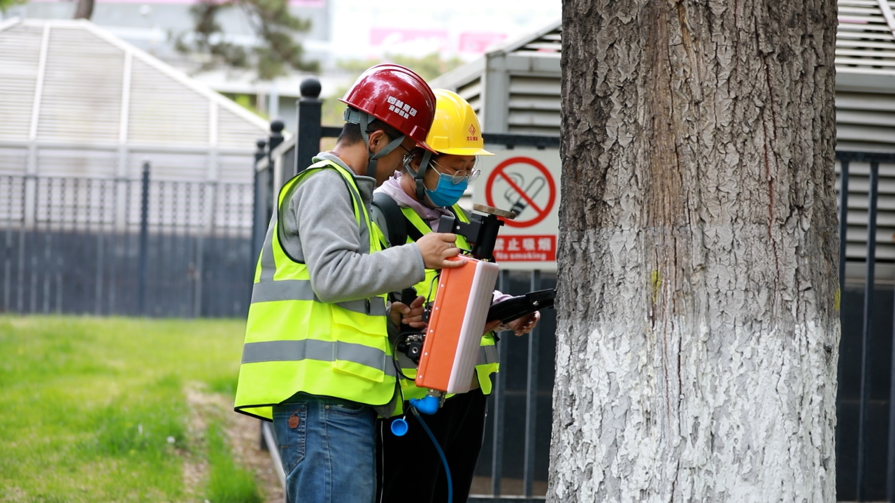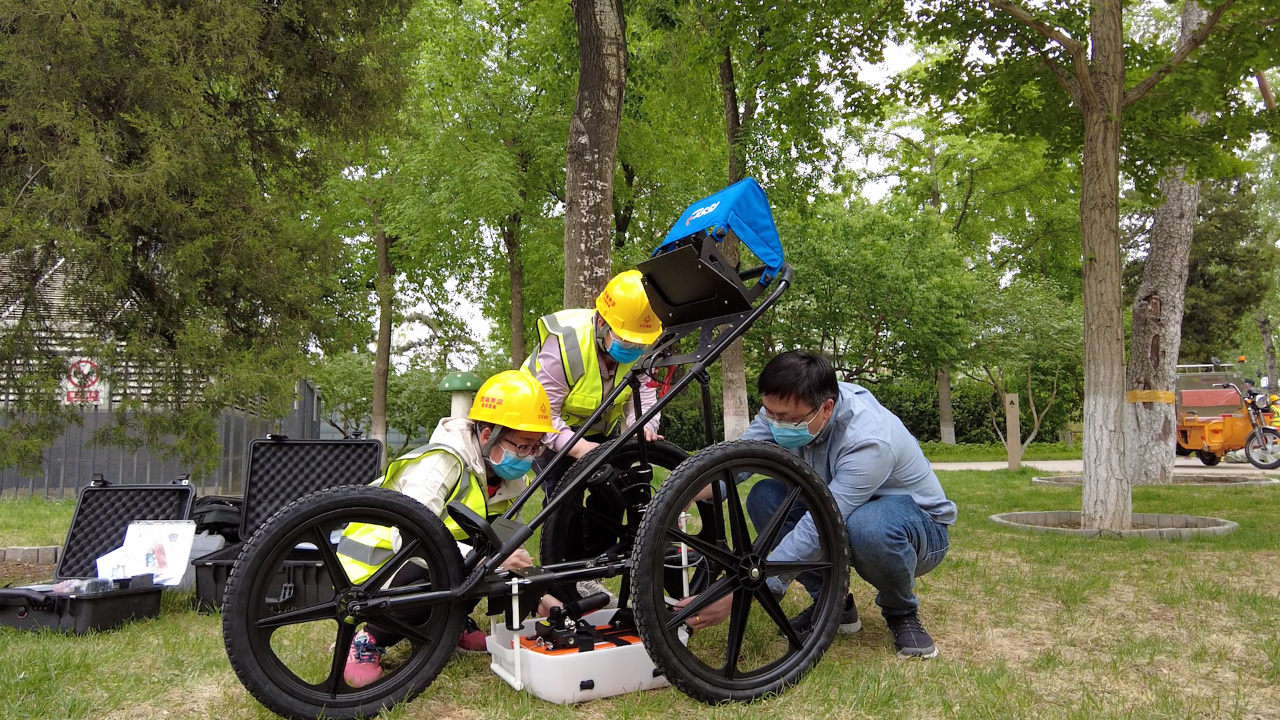 樹木和人一樣也需要定期體檢,尤其是北京有許多古樹或高齡樹木。4月21日,高發明來到北京市公主墳綠地古樹公園,和同事們用樹木雷達檢測儀,就樹木的地下根系進行整體掃描。“通過檢測儀我們可以看到整個根系的分布情況,檢查哪些地方有根系,哪些地方沒有根系,之后可以做到精準的復壯。”2021年,北京市即將開展古樹名木的健康體檢工作,高發明和同事們將負責東城、西城、海淀等相關區縣的古樹體檢工作,為北京的古樹建立更完善的電子檔案。