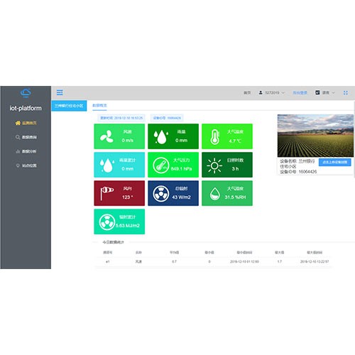 ? 實時監(jiān)測風(fēng)速、風(fēng)向、雨量、溫度、濕度、氣壓、太陽輻射、土壤溫度、土壤濕度等要素參數(shù)
