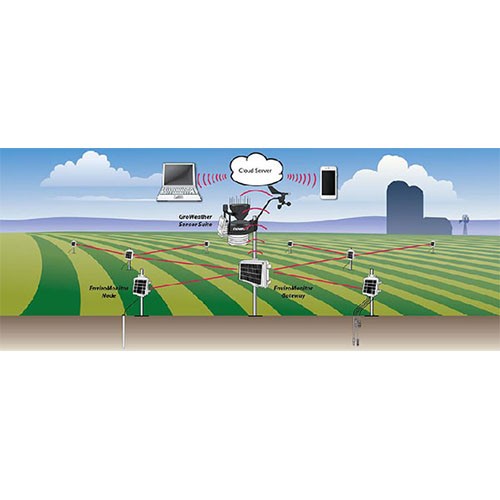 每個(gè)節(jié)點(diǎn)可直接連接多種傳感器(0-4個(gè)),直接收集測(cè)量數(shù)據(jù),然后將數(shù)據(jù)發(fā)送給網(wǎng)關(guān)。1個(gè)網(wǎng)關(guān)可以掛載至少20個(gè)節(jié)點(diǎn)(也可以直接連DAVIS接傳感器組件ISS),通過(guò)蜂窩網(wǎng)絡(luò),網(wǎng)關(guān)將數(shù)據(jù)推送到云端服務(wù)器上,用戶可使用電腦、平板或者智能手機(jī)訪問(wèn)這些數(shù)據(jù)。
