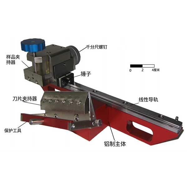 1、刀片固定于專用刀架,刀片與樣本表面呈固定10°夾角,此夾角為木材最優切割角度。刀片類型采用通用NT-cutter A型刀片(厚0.38mm),無需專業磨刀。