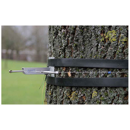 DC3和DC4是DC1改進(jìn)版本。鋼絲繩的拉力改為徑向設(shè)置。這樣鋼絲繩對(duì)樹的壓力和樹徑無(wú)關(guān),不同樹徑的測(cè)量結(jié)果可直接比較。傳感器通過(guò)一個(gè)由熱膨脹系數(shù)低的合金制成的鋼絲繩固定在樹上。用小塑料環(huán)減少鋼絲繩對(duì)樹的壓力,并減少摩擦阻力,大大提高靈敏度。